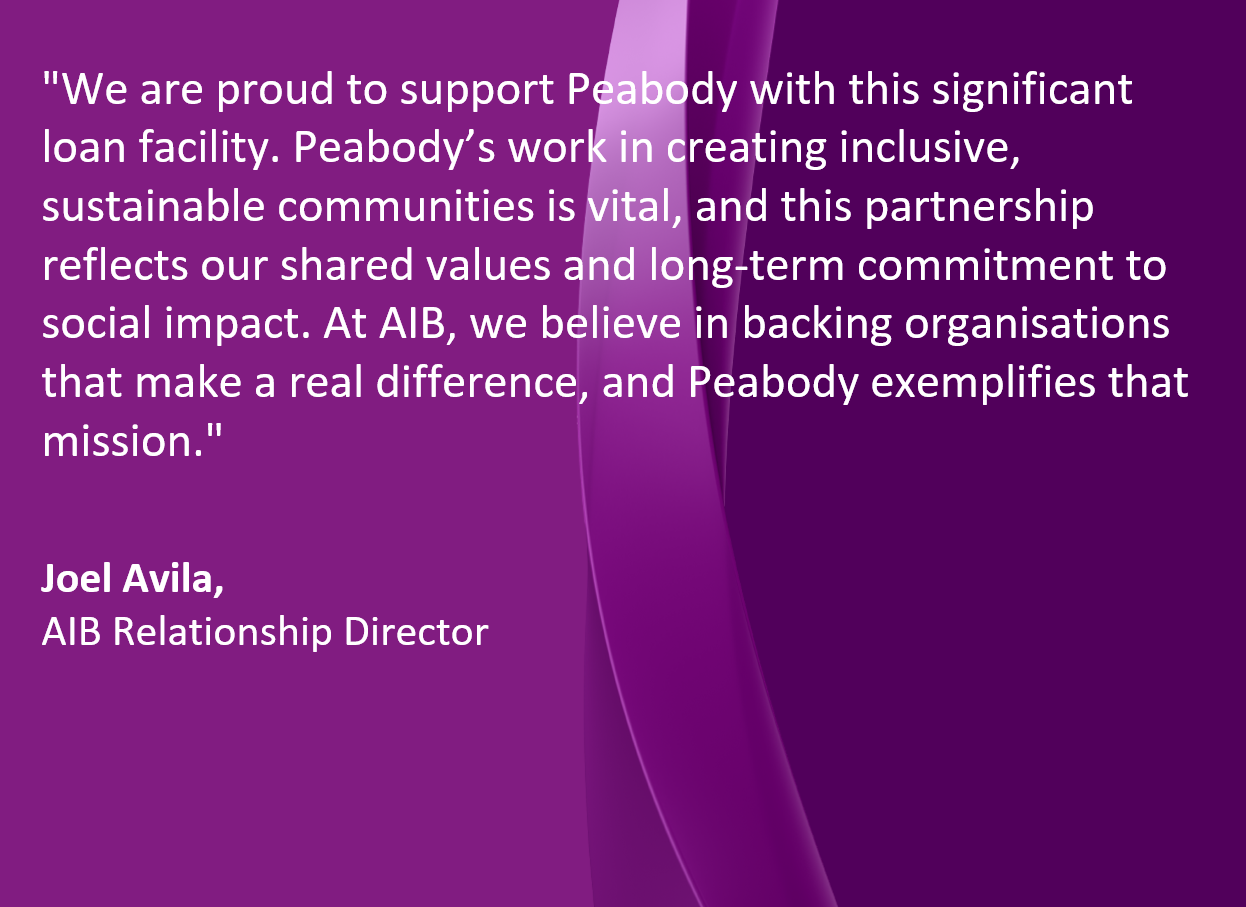 Allied Irish Bank (AIB) is pleased to announce the provision of a new £100 million loan facility to not-for-profit housing association Peabody. This strategic funding will support Peabody’s continued investment in residents' homes and their neighbourhoods across London and the South East.