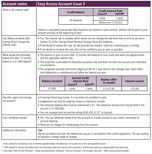 If you currently have a Savings Direct Easy Access Account with Allied Irish Bank (GB), you have the opportunity to switch your funds (minimum of £5,000) to a Savings Direct Fixed Rate Bond.